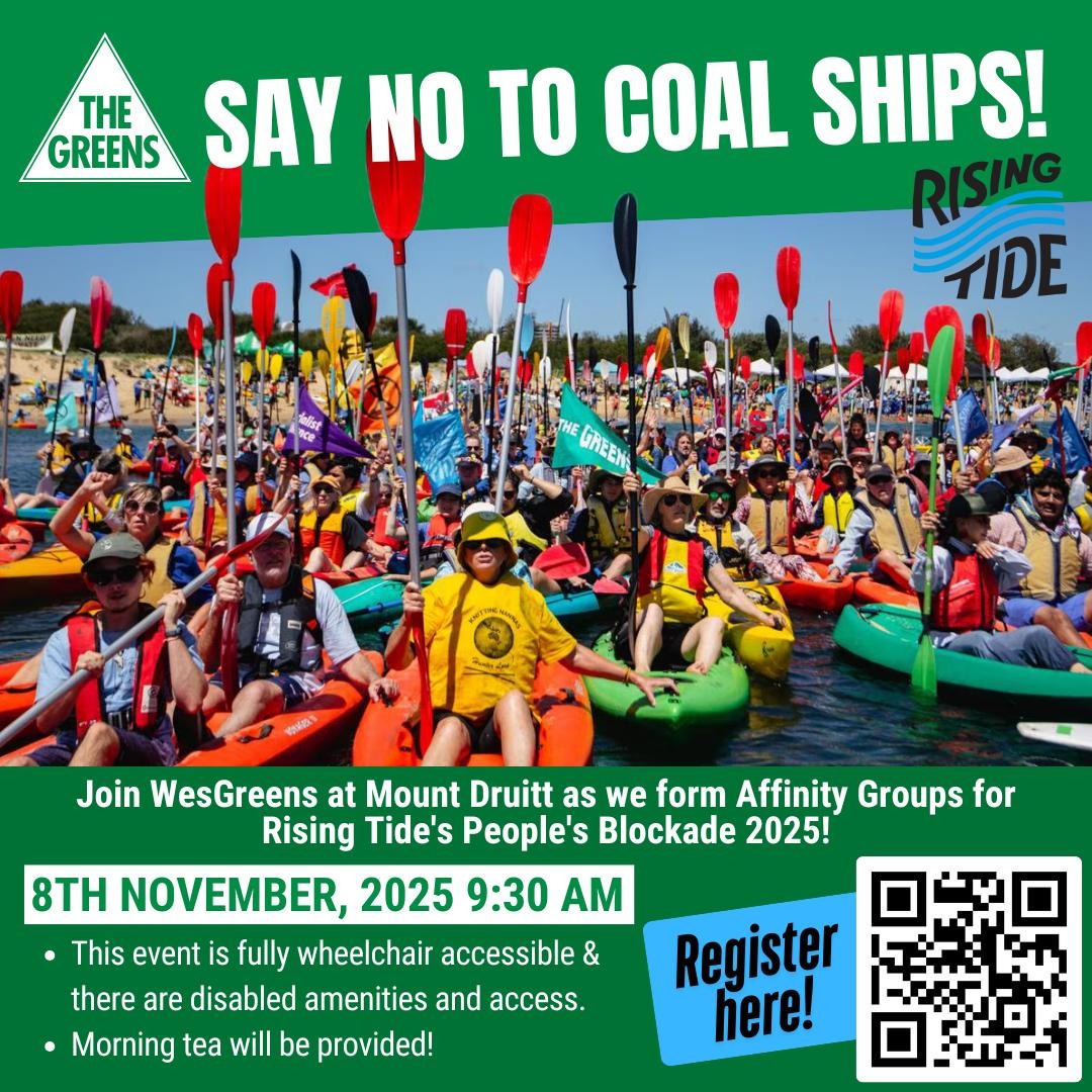 Join WesGreens as we form Affinity Groups for The People's Blockade 2025! Co-hosted by Tom Colley from Rising Tide and Lilli Barto from Legal Observers NSW.